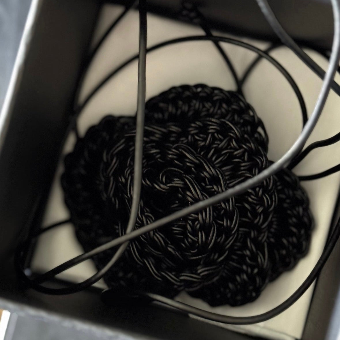 Bold and romantic, The Rose Belt is a hand-crocheted leather accessory featuring a sculptural rose crafted from premium genuine leather. Threaded onto a long leather cord and designed to tie around the body, this piece adapts to your mood and styling – wear it as a belt, a choker, or even a statement bracelet. No hardware, no rules – just a soft, powerful detail that completes your look.